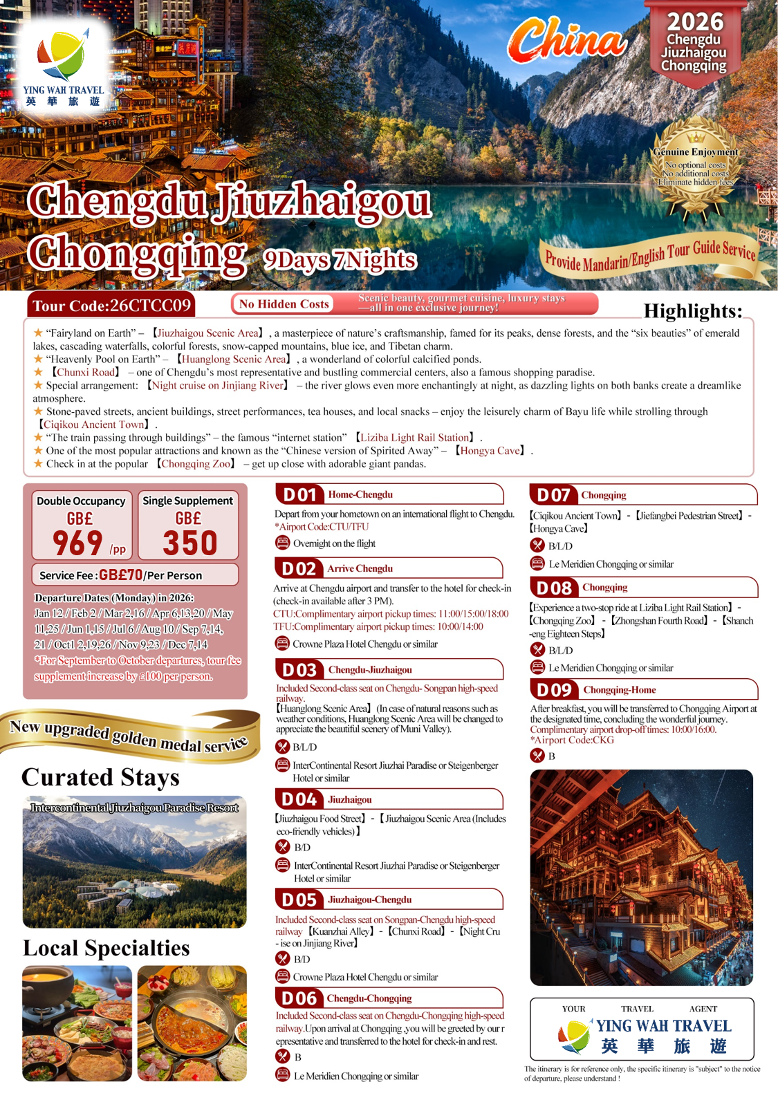 CHENGDU JIUZHAIGOU choNGQING 9-DAY TOUR