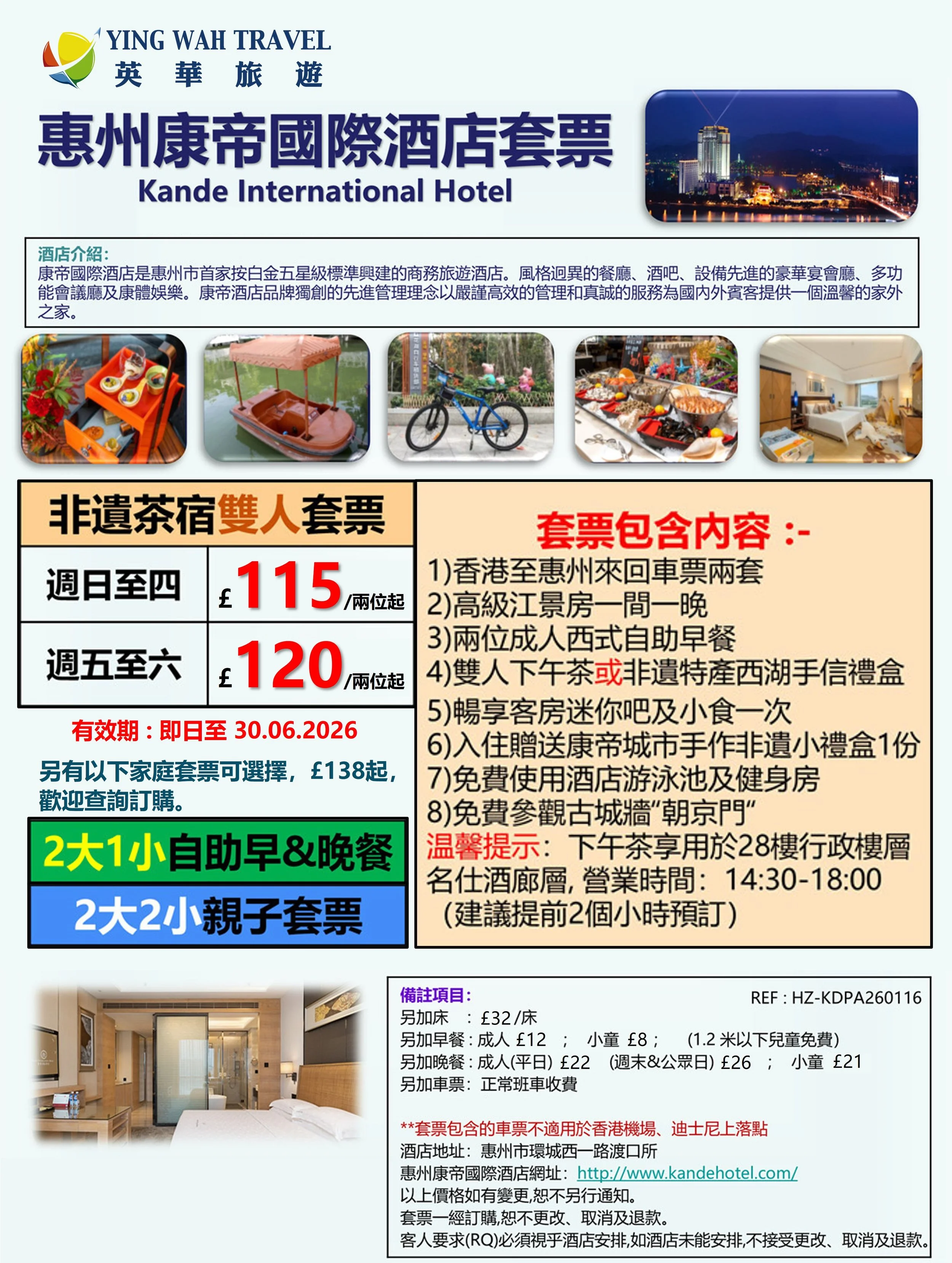 惠州康帝國際酒店套票 (HZ-KDPA260116)